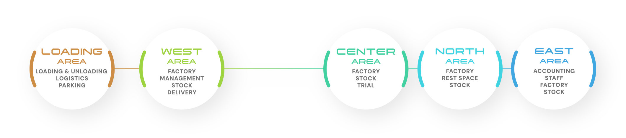 ■作業面積:377㎡(最大ライン作業者数64名)/倉庫面積:200㎡